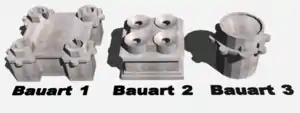 - G-Turm. Dimensions : 43 × 43 × 54 m, habituellement armée de huit (quatre jumelés : 4 × 2) canons de 128 mm et trente-deux (huit quads : 8 × 4) canons de 20 mm.
