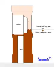 Les restitutions envisagent un monument haut de 10,80 m, couronné en bâtière. La niche serait voûtée en berceau et l'absidiole en cul-de-four[11].