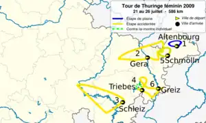 | 2e étape | 22 juill. | Gera – Gera | étape vallonnée | 129,9 | ||