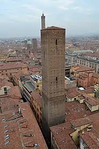 Érigée dans la seconde moitié du XIIe siècle, elle mesure 61 mètres de haut, ce qui en fait la deuxième tour la plus haute de Bologne après la tour des Asinelli. Par le passé, elle était d'ailleurs probablement encore plus élevée, comme en témoignent à la fois l'épaisseur considérable des murs à la base (environ 2,28 mètres), et la présence d'une fenêtre coupée du toit actuel.
