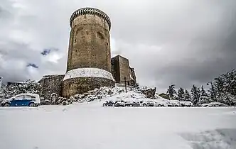 La tour, haute de 27 mètres avec des murs dépassant en plusieurs points 5 mètres d'épaisseur, s'étend sur 4 niveaux et est bordée de mâchicoulis[1].
