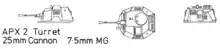 La tourelle APX 2 est une tourelle biplace, blindé à seulement 25 mm. Elle équipe la moitié des AMC 34 (armée d'un canon de 25 mmSA type RF)[6] et l'AMC 35 (armée d'un canon de 47 mm SA 35)[1].