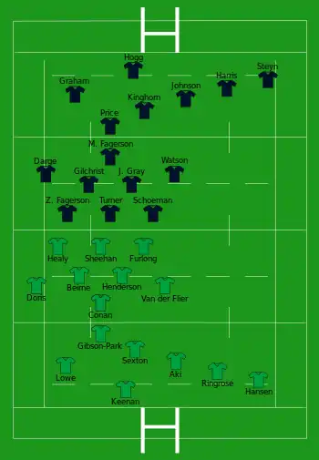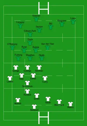 - 4 essais de Sheehan (17e), Healy (28e), van der Flier (60e), Murray (80e)