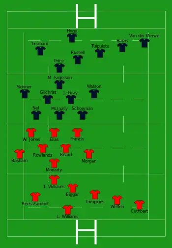 - 5 essais de Johnson (18e), Harris (22e, 37e), Graham (48e) et Hogg (61e)