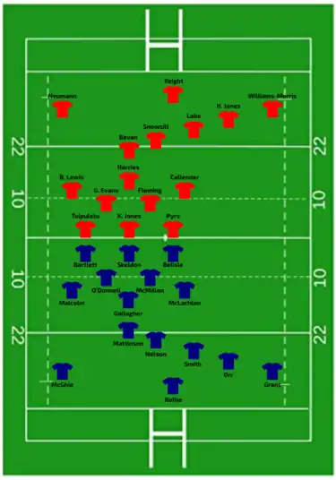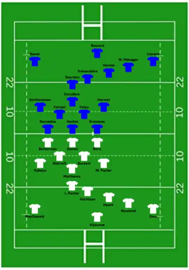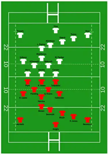 - 6 essais de Dow (16e), M.Packer (25e), Matthews (31e), pénalité (35e), Aldcroft (40e+1) et Davies (59e).