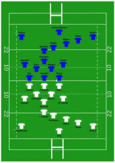 | Le à 17 h 45 | Stade Sergio-Lanfranchi, Parme | 24 - 7 | Irlande | |