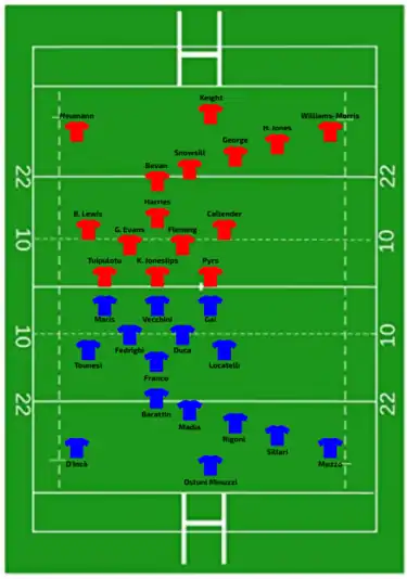 | Le à 16 h 30 | Stade Sergio-Lanfranchi, Parme | 10 - 36 | Pays de Galles | |