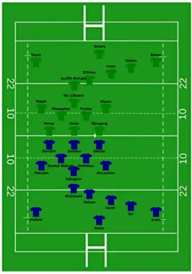 | Talonneur | Neve Jones, Clara Nielson, Deirbhile Nic a Bháird (en) | |