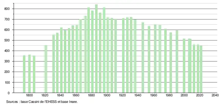 - Fiches Insee - Populations légales de la commune pour les années 2006, 2007, 2008, 2009, 2010, 2011, 2012, 2013, 2014, 2015, 2016, 2017, 2018, 2019, 2020 et 2021.