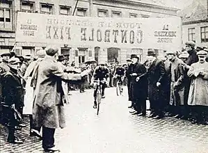 Tour de Belgique 1922, le peloton vire au contrôle de Maeseck.