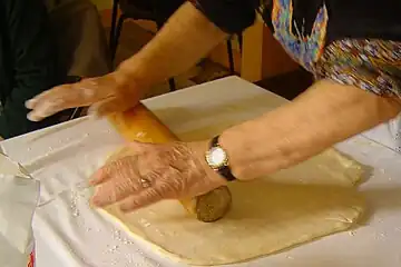 La grande révolution dans la recette a été de la faire avec une pâte étirée, comme le baklava turc, appelée « voile de la mariée ». Traditionnellement, on réserve le mot de « tourtière » à la pâte étirée et celui de « croustade » à une pâte feuilletée au beurre, postérieure (XVIIIe siècle).
