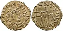 Peu à peu, certains rois commencent à faire des pièces à leur effigie, comme Thibert Ier (roi d'Austrasie de 534 à 548), mais cette évolution est lente[5]. Ce n'est qu'à partir de la dévaluation réalisée en 580 dans l'empire d'Orient que les rois occidentaux déclarent plus systématiquement la provenance de leurs pièces tout en abaissant également leur teneur en or. Toutefois, à partir de 660, l'argent y remplace l'or comme monnaie principale.