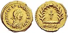- Le trémissis est souvent appelé triens dans un contexte mérovingien, suivant ainsi l'usage de Grégoire de Tours[5]. Ce nom correspond toutefois aussi à celui d'une monnaie de bronze plus ancienne dont la valeur était d'un tiers d'as.