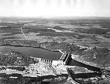 Pourtant, la même année, Duke et Price doivent abandonner temporairement le projet. Les négociations avec les fermiers pour l'expropriation des terres s'annoncent trop ardues[8]. Deux câbles d'acier que la compagnie avaient installés au-dessus de la Grande-Décharge ont été sectionnés par des vandales[10]. Il y a aussi la guerre qui leur enlève une certaine main d'œuvre.