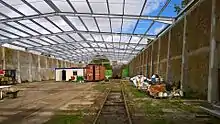 Au second plan, les nouvelles voies métriques du dépôt du chemin de fer touristique.