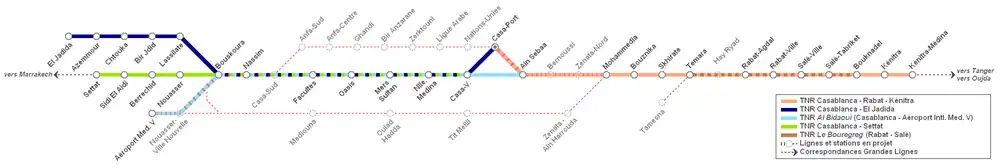 En 2016, l'ONCF a transféré le terminus des TNR vers Settat à la gare de Casa-Port au lieu de celle de Casa-Voyageurs[4].