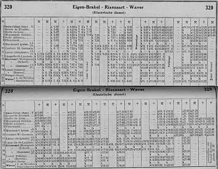 2. Horaire des trains du au , Société nationale des chemins de fer belges (SNCB) (lire en ligne sur le Grenier Ferroviaire)