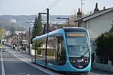 Un tramway de la ligne 2, près de la station Chamars. | ||
