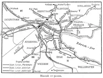 D'autres compagnies de tramways avaient été fondées, certaines n'exploitant que des lignes à l'intérieur de Zurich, d'autres reliant la ville à ses banlieues proches, et enfin certaines dans les zones rurales mais toujours en correspondance avec le réseau urbain.