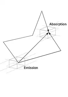 - soit sur la forme du coefficient d'absorption, auquel cas on peut définir une approximation par l'intermédiaire d'un coefficient pour une direction donnée[5],[6]. On ne peut donc utiliser ce type de méthode dans les problèmes multidimensionnels que lorsque la méthode de résolution résulte de la superposition de problèmes unidimensionnels (lancer de rayons, méthode , etc.) ;