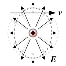 Champ électrique autour d'un électron en mouvement