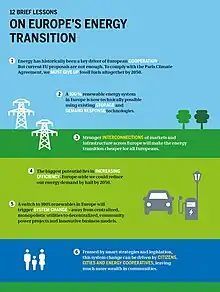 La notion de transition énergétique apparaît aux États-Unis dans les années 1970[2], au sein des milieux atomistes soucieux de promouvoir le développement nucléaire dans un contexte de crise du pétrole[3]. La notion renvoie aujourd'hui principalement au défi d'une diminution drastique de la consommation énergétique, d'une sobriété en carbone et en énergie, afin de diminuer les émissions de gaz à effet de serre, pour limiter l'ampleur du changement climatique[4].