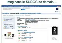 - le groupe Systèmes & Données a pour mission d’envisager quels pourraient être les outils et le format nécessaire à la production de catalogues aux nouvelles normes. Il prépare la migration des données des catalogues actuels vers une nouvelle structuration de l’information bibliographique notamment en organisant des journées d'étude[19] dont les contenus sont accessibles[20].