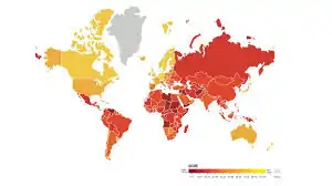 - L'indice de perception de la corruption (IPC) classe depuis 1995 la plupart des États selon une échelle allant de 0 (pays très controversé, comme la Somalie) à 10 (pays exemplaire, à l'image des pays nordiques). Bien que cet indice ait un succès notable et soit relayé par de nombreux média, ses résultats sont souvent controversés car présentant un risque de subjectivité. En effet il est entièrement basé sur des sondages de personnalités telles que des hommes d'État, des entrepreneurs ou des universitaires qui peuvent être liés aux gouvernements en place.