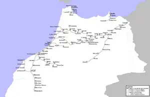 Il consiste en un axe principal d'orientation générale nord-sud reliant Oujda au nord-est à Marrakech au centre-sud, via Fès, Meknès, Kénitra, Rabat et Casablanca. Des lignes en antennes desservent Tanger, Nador, Oued Zem, El Jadida et Safi.