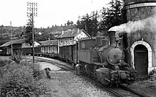 Un train de fret du réseau à voie métrique du Vivarais à Lamastre en 1960.