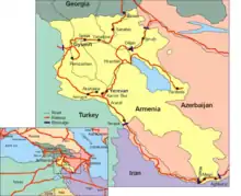 Depuis son indépendance, l'Arménie développe son réseau routier interieur. Le « Programme d'investissement dans le corridor routier Nord-Sud » est un projet d'infrastructure majeur qui vise à relier la frontière sud de l'Arménie (frontière entre l'Arménie et la Géorgie) avec sa frontière nord (frontière entre l'Arménie et l'Iran) au moyen d'une autoroute (Meghri-Kapan-Goris-Erevan-Ashtarak-Gumri-Bavra) longue de 556 km. Il s'agit d'un projet d'infrastructure majeur de 1,5 milliard de dollars financé par la Banque asiatique de développement, la Banque européenne d'investissement et la Banque eurasiatique de développement. Toutefois, le conflit entre l'Arménie et l'Azerbaïdjan complique la situation.