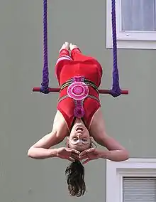 Trapèziste en équilibre sur son trapèze.