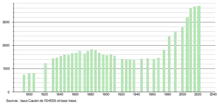 3 693 hab. (2021 en augmentation de 0,9 % par rapport à 2015)