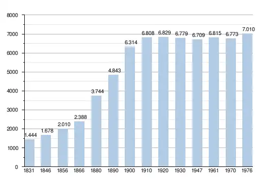 - Sources : INS, Rem. : 1831 jusqu'en 1970 = recensements, 1976 = nombre d'habitants au 31 décembre.