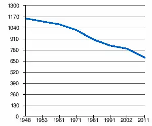 En 2002, l'âge moyen de la population était de 43 ans pour les hommes et 44,1 ans pour les femmes[3].