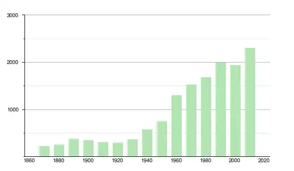 | 1970 | 1 523 | ▲ +17,06 % | |