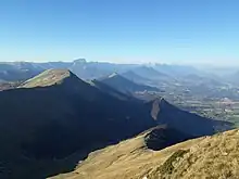 Le Trièves vu depuis le Jocou au sud-ouest en direction de la Mure et du massif du Taillefer. | |