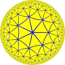 Un triangle hyperbolique est, en géométrie hyperbolique, un triangle dans le plan hyperbolique. Comme en géométrie plane, un triangle est constitué de trois segments (ses côtés) reliant trois points (ses sommets).