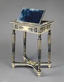 Le seul meuble subsistant est une petite table formant écritoire, recouverte d'ivoire et de corne peinte en bleu[6], attribuée à Pierre Gole. Cette table a été redécouverte par l'antiquaire Bernard Steinitz, qui l'a vendue en 1983 au Getty Museum, après que les autorités compétentes ont signé un certificat d'exportation la définissant comme travail portugais du XIXe siècle[7]. De son côté, Jacques Garcia détient un grand cache-pot en faïence bleue et blanche provenant du Trianon de porcelaine[8].