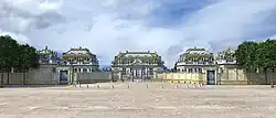 La cour est entourée de quatre pavillons dédiés aux préparations culinaires destinées au Roi, à raison de deux de chaque côté de la cour. Le premier pour les entremets, le deuxième pour les confitures, le troisième pour les potages, les entrées et les hors-d'œuvre, et le quatrième pour dresser les fruits, la table des princes et des seigneurs, ainsi que pour les dessertes et les buffets.