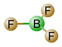 Dans ce composé, le bore est déficitaire en électrons. Au cours des réactions chimiques, BF3 se comporte donc comme un acide de Lewis. Il réagit par exemple avec les fluorures en formant des sels de tétrafluorure :
