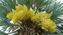 Trithrinax campestris est une espèce de palmiers de la famille des Arecaceae, originaire de l'Uruguay et du nord-est argentin. Très rustique (Zone USDA 8a)[1], il croît dans des zones à sol aride, rocailleux et secs, partageant son habitat avec le palmier caranday ou Copernicia alba, qui résiste, pourtant, moins bien au froid que T. campestris. Il se distingue par le fait qu'il conserve les restes des palmes mortes collés au tronc, ce qui lui donne un aspect caractéristique.
