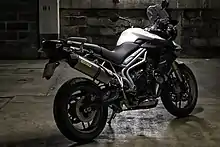 C'est la dernière version de la Tiger 1050, avec une cible de clients plus route. La moto est moins haute, plus fine. Le moteur développe 125 ch mais est bridé en France à 105 ch dans ses premières versions.