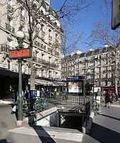 Avant 1914, la station est équipée d'un des premiers escaliers mécaniques qui subsiste jusqu'en 1959, d'une balustrade de Joseph Cassien-Bernard, ainsi que, sur le terre-plein central, d'un accès orné d'un édicule Guimard, supprimé en 1936[3].