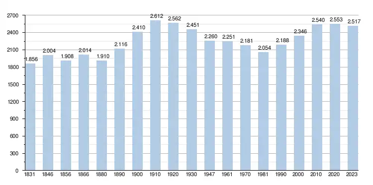 Les chiffres des années 1831 à 1970 tiennent compte des chiffres des anciennes communes fusionnées.