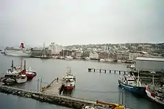 Les navires de l'express côtier (Hurtigruten) qui relie Bergen à Kirkenes le long de la côte fait étape à Tromsø. Des navires de croisières font aussi de même durant la saison estivale.