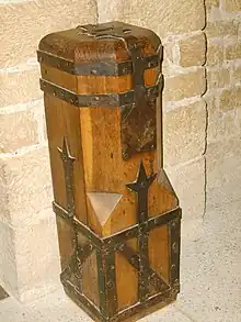 tronc de bois et tronc à offrandes, chemin de croix de Rocamadour (Lot)