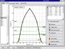 Il existe différents appareils pour les mesures dendrométriques, notamment pour les mesures de profil du tronc. Par exemple, il est possible, à partir de mesures de diamètres en hauteur (diamètres éloignés), d'estimer la hauteur totale, le volume et autres caractéristiques d'un arbre (à partir de 6 diamètres mesurés). Il est même possible de 'découper' virtuellement l'arbre et d'en calculer le volume sur pied selon la qualité.