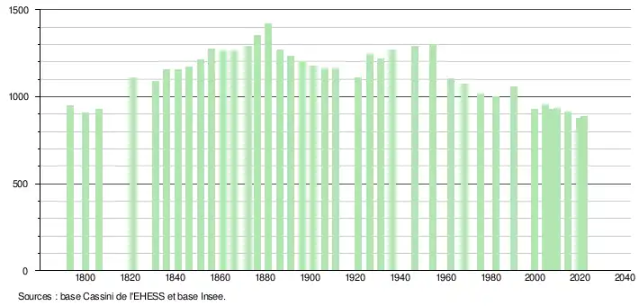 En 2021, la commune comptait 887 habitants[Note 2], en diminution de 2,63 % par rapport à 2015 (Allier : −1,97 %, France hors Mayotte : +1,84 %).