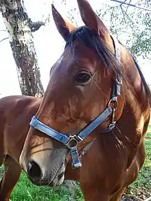 La robe est généralement baie sous toutes les nuances, ou alezane[2], avec peu de marques blanches[4].